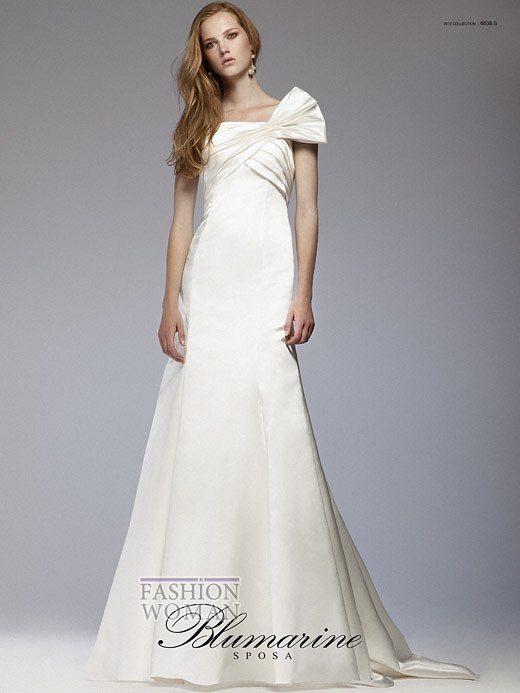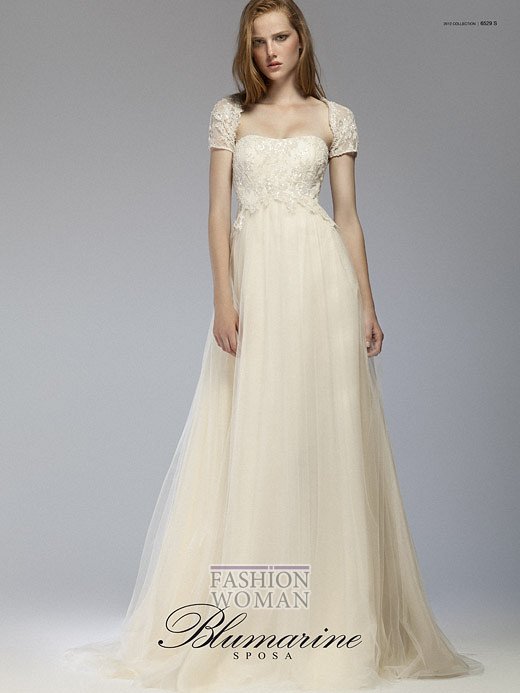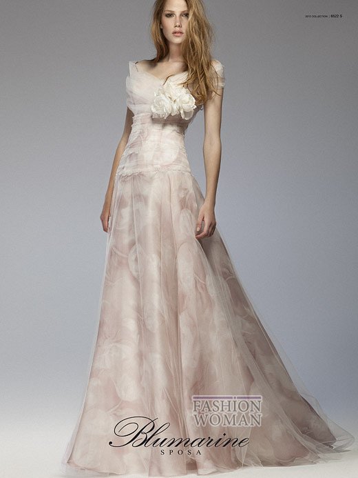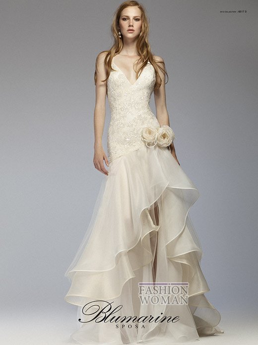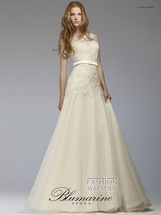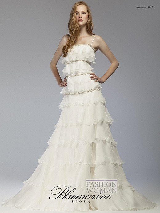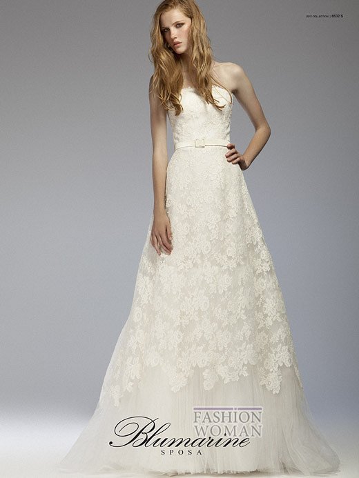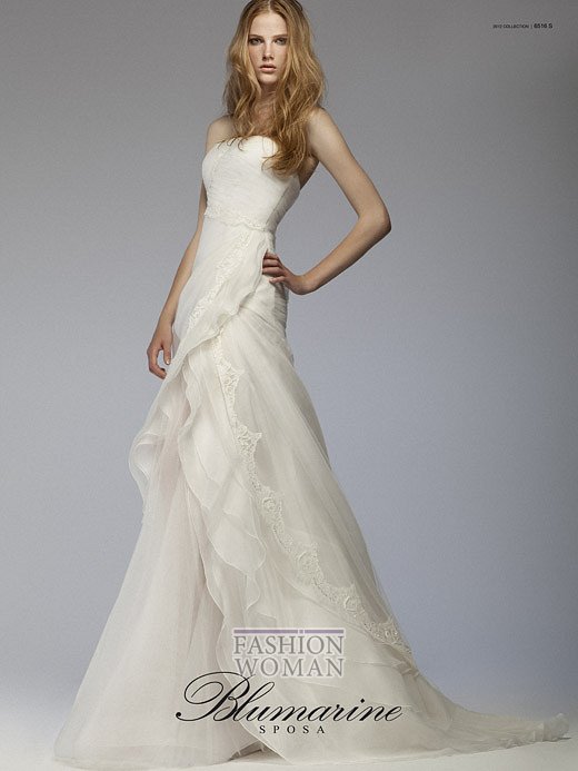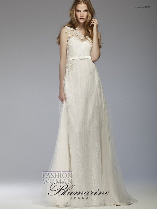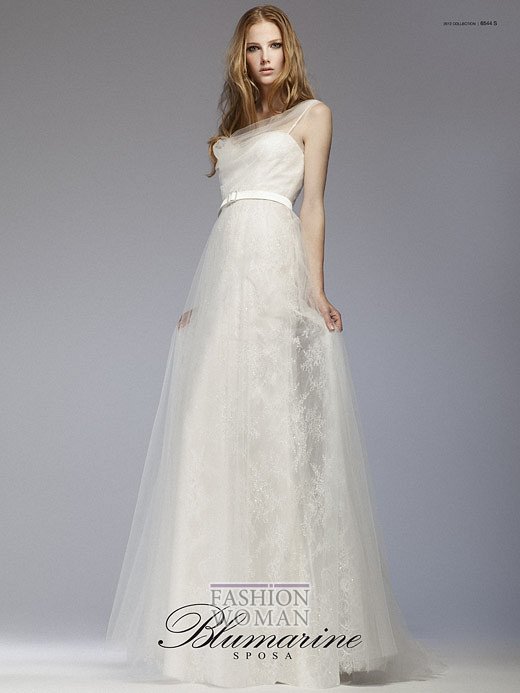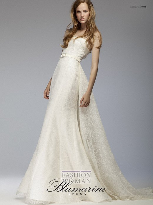 Легкие воздушные ткани, изысканные кружева, элегантный дизайн и нежные цвета - ключевые составляющие новой роскошной коллекции свадебных платьев Blumarine весна - лето 2012. В ней представлены модные в этом сезоне модели платьев - рыбка и А-силуэт.