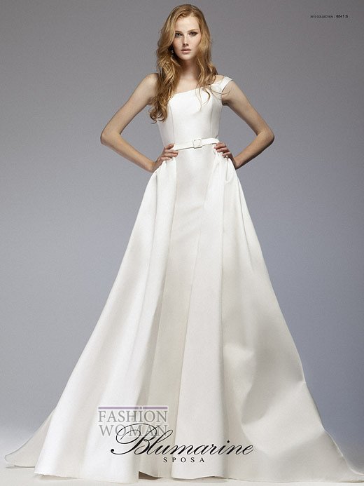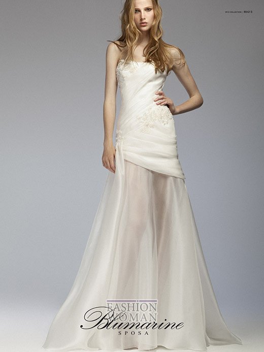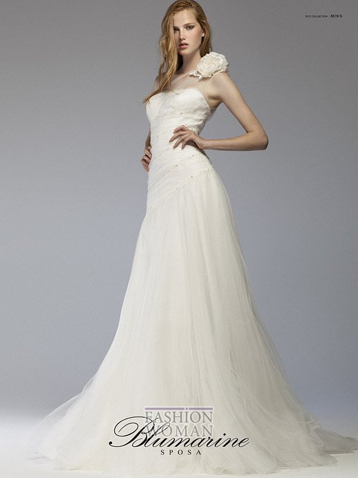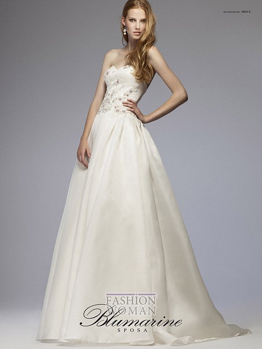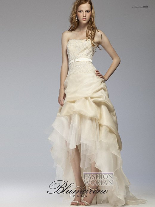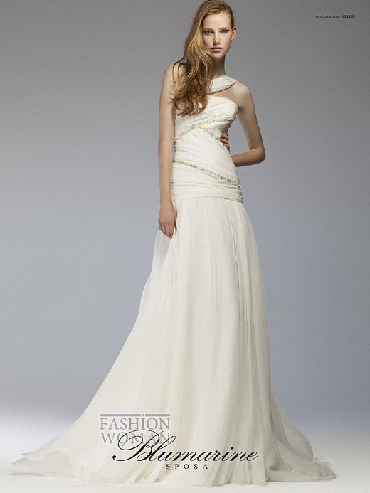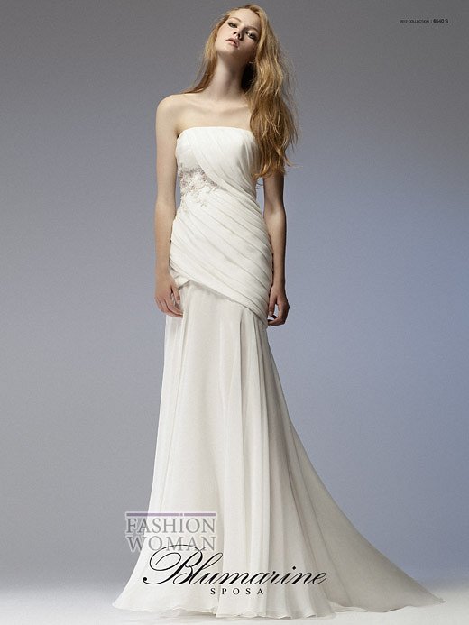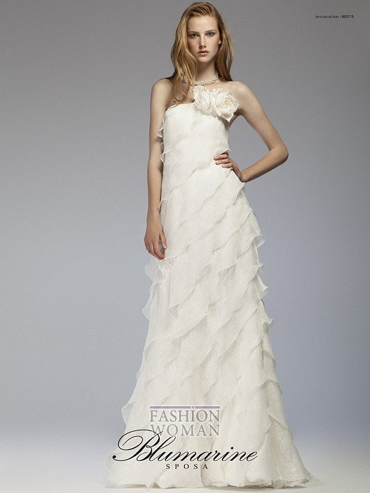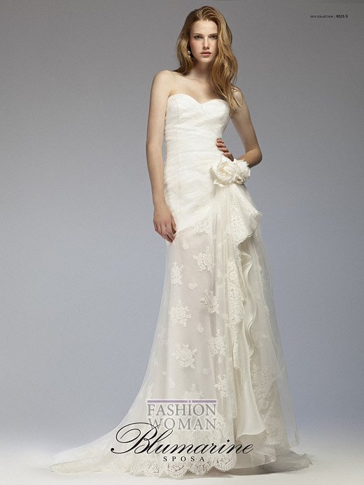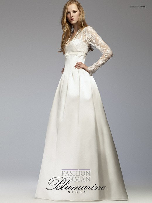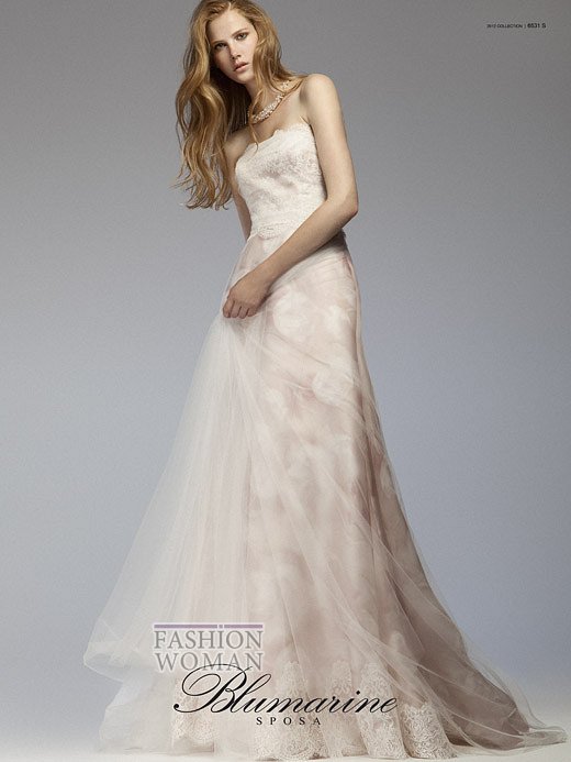 Легкие воздушные ткани, изысканные кружева, элегантный дизайн и нежные цвета - ключевые составляющие новой роскошной коллекции свадебных платьев Blumarine весна - лето 2012. В ней представлены модные в этом сезоне модели платьев - рыбка и А-силуэт.