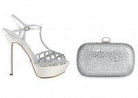 К свадебным туфлям и босоножкам, усыпанным россыпью кристаллов и стразов, Sergio Rossi предлагает подобрать роскошный клатч.