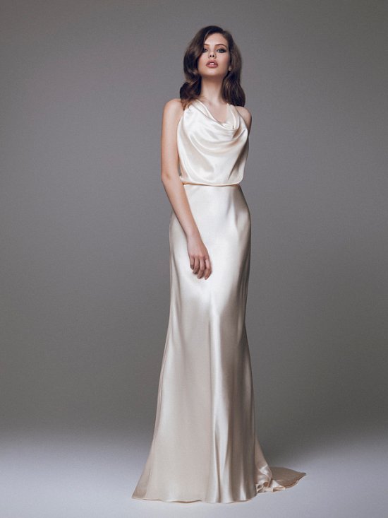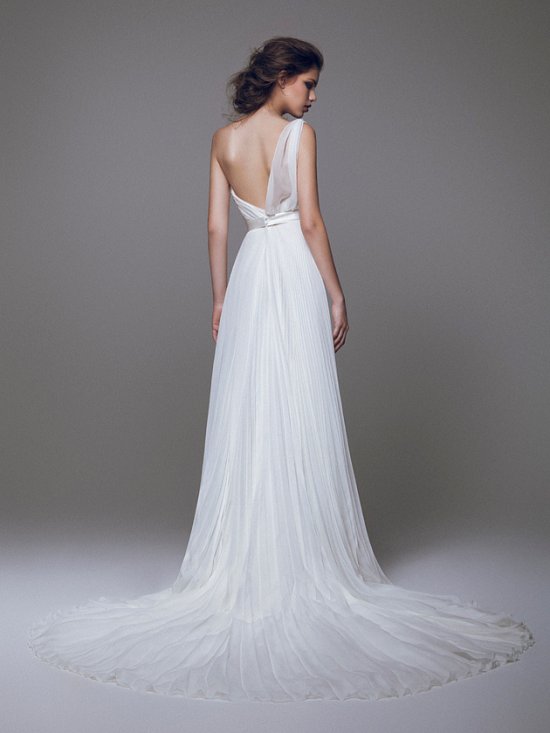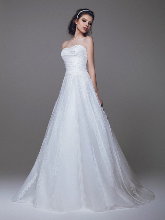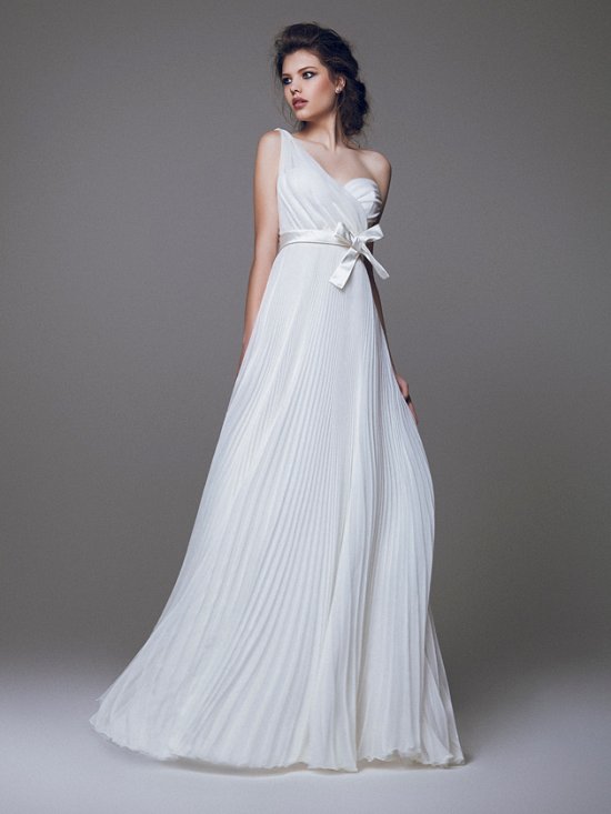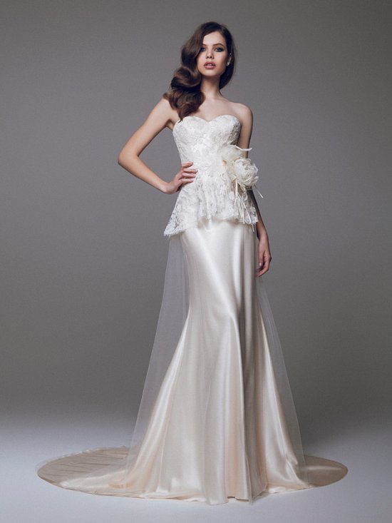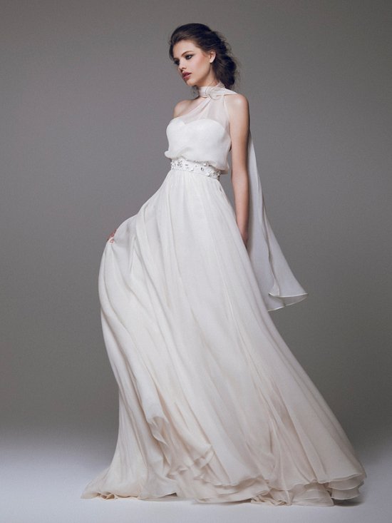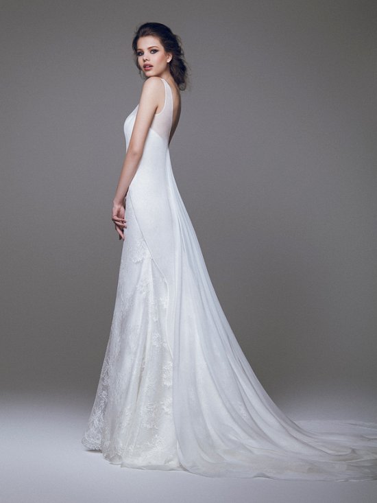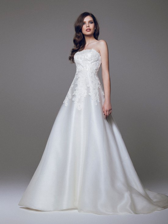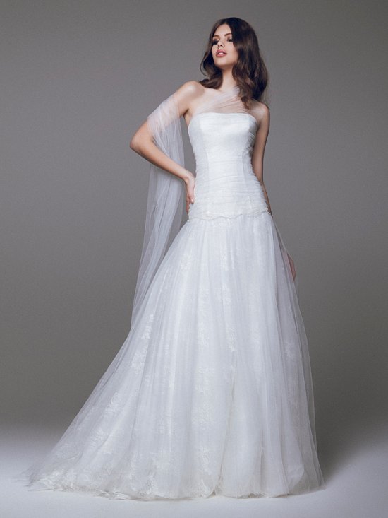Удивительно красива и цветовая палитра свадебных платьев: в ней есть и белоснежные наряды, и модели цвета слоновой кости, и платья оттенка шампань, и хит коллекции – платье с едва заметным нежным акварельным рисунком.
