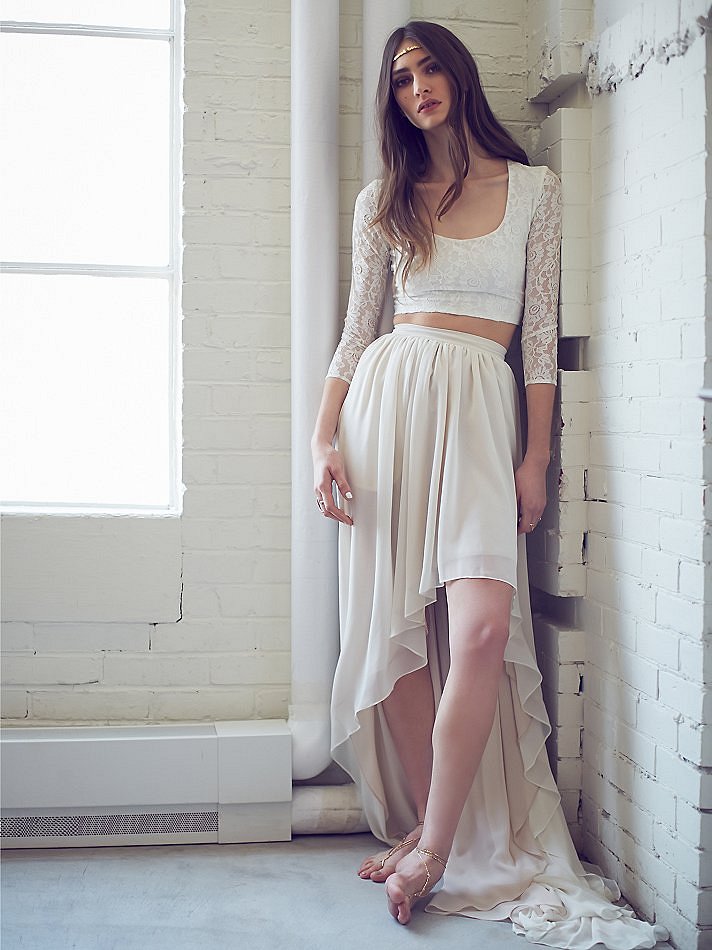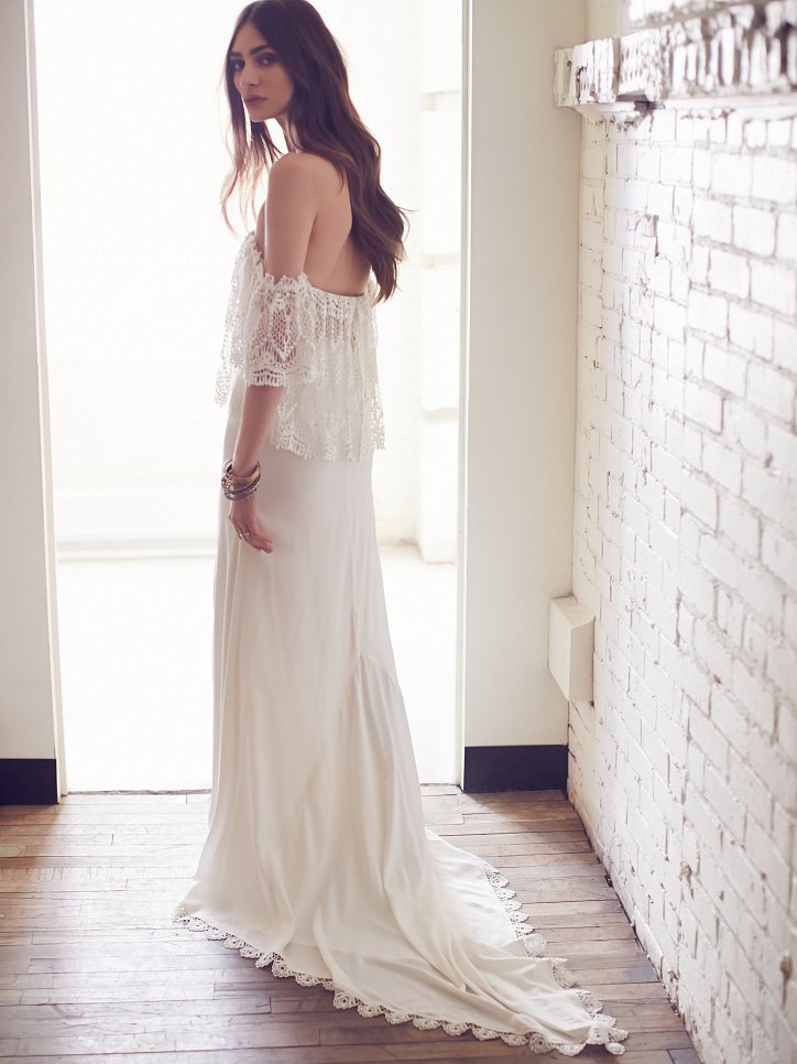 Американский бренд Free People очень часто в своих коллекциях обращается к богемному стилю. Исключением не стала даже свадебная линия бренда, которая получила название "City Bride".