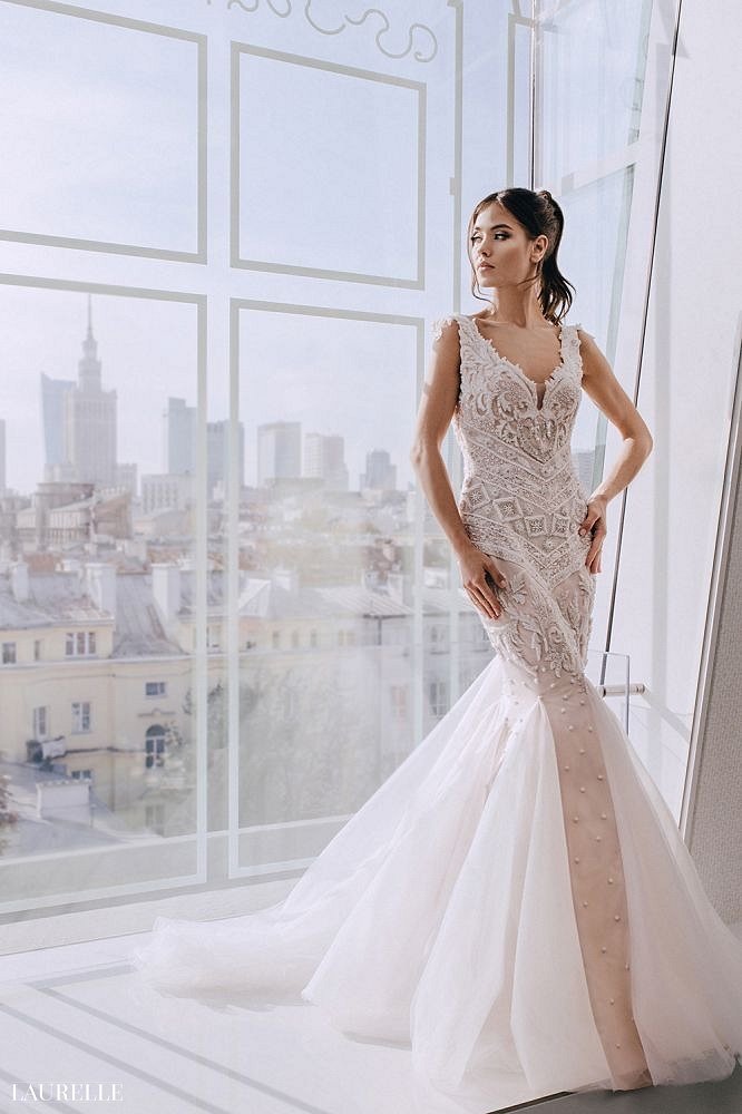 Польская марка Laurelle представила новую коллекцию свадебных платьев 2018. Ее основу составили чувственные и романтичные наряды декорированные кружевным орнаментом, нежными цветами и аппликациями из кристаллов.
