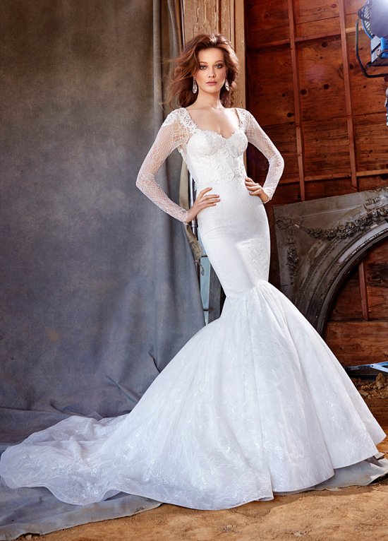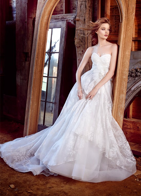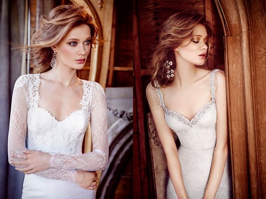 Для осеннего торжества дизайнеры американского бренда предлагают наряды традиционных свадебных силуэтов с пышными текстурированными юбками, а также узкие платья из легких воздушных тканей, щедро украшенные бисером, кристаллами, тончайшей вышивкой и изысканным кружевом Шантильи.