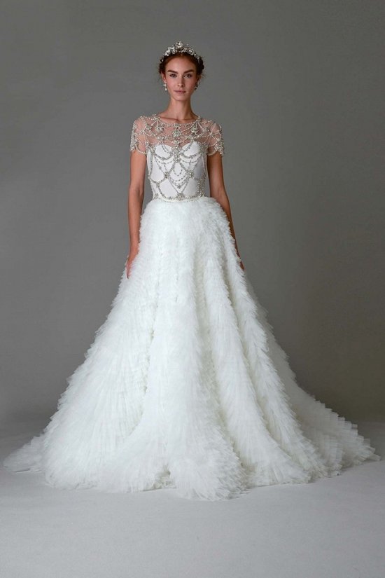 Дизайнерский дуэт Джорджина Чапман и Керен Крейг в своей новой коллекции Marchesa для сезона осень-зима 2016-2017 основную ставку сделали на женственные силуэты, изысканный декор и классическую "свадебную" цветовую гамму.