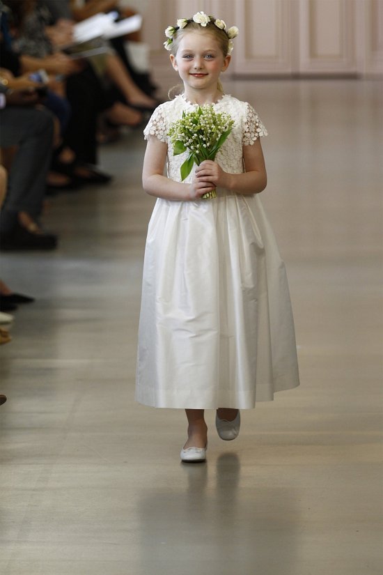 В ней дизайнер продолжил традиции модного дома и представил на подиуме белоснежные свадебные платья классического силуэта, выполненные из тюля, органзы и шелка и украшенные изысканным кружевом, вышивкой и кристаллами.