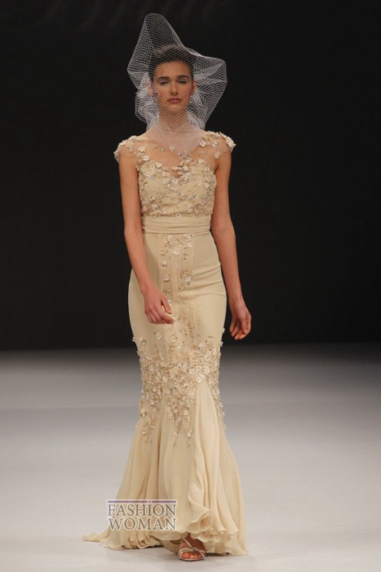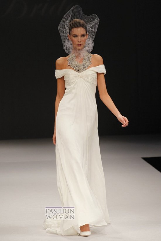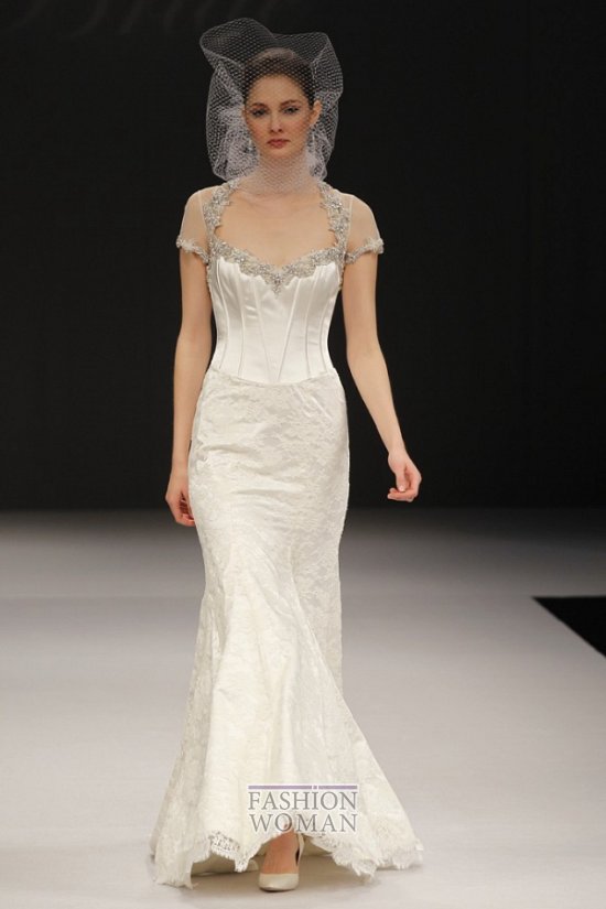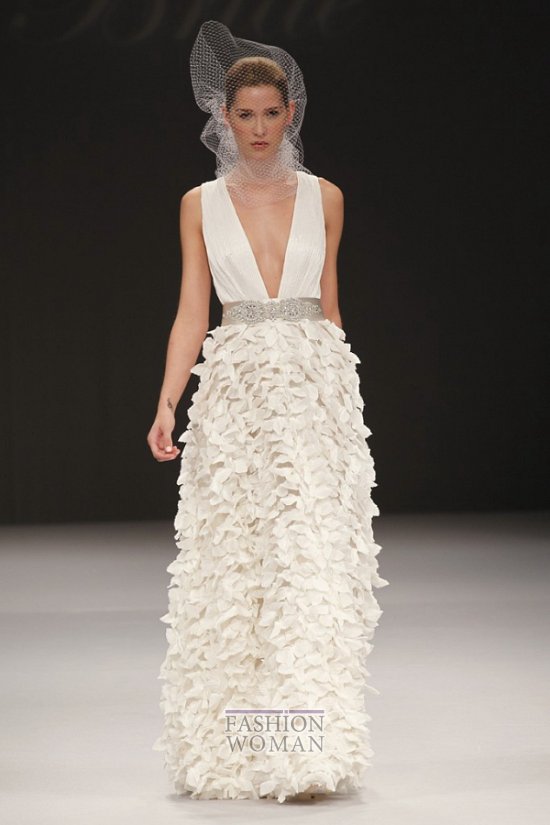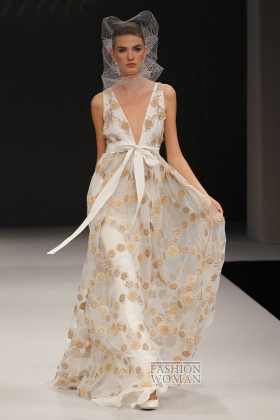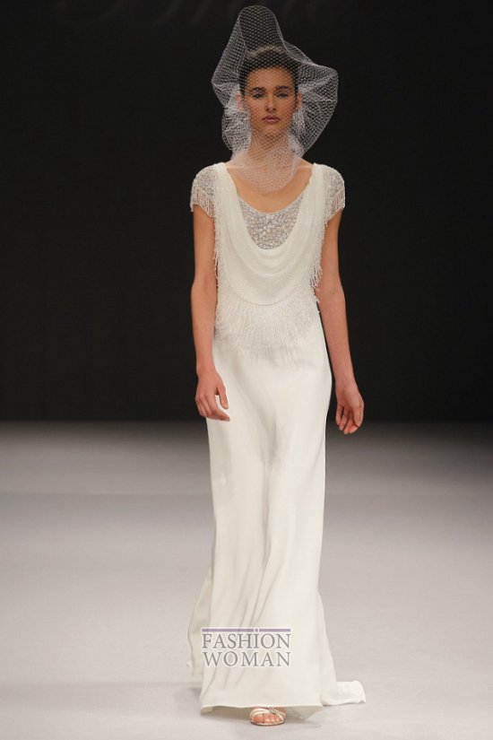 Простые силуэты, легкие струящиеся ткани, изысканная вышивка серебром, декор кружевом перьями и кристаллами - все в новой коллекции изящно и гармонично. Особо хотелось бы выделить использование дизайнерами бренда сетки-вуали вместо традиционной фаты.