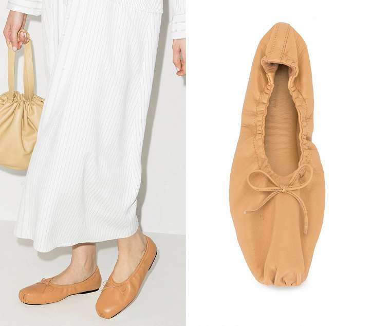 В сезонных коллекциях дизайнеры представили множество самых разных моделей – и лаконичных, и «выходных», с острым или круглым носком, из кожи, атласа и сеточки. Но, пожалуй, самыми актуальными будут мягкие балетки, напоминающие пуанты. Такие предложили Khaite, Celine, Simone Rocha и многие другие бренды.