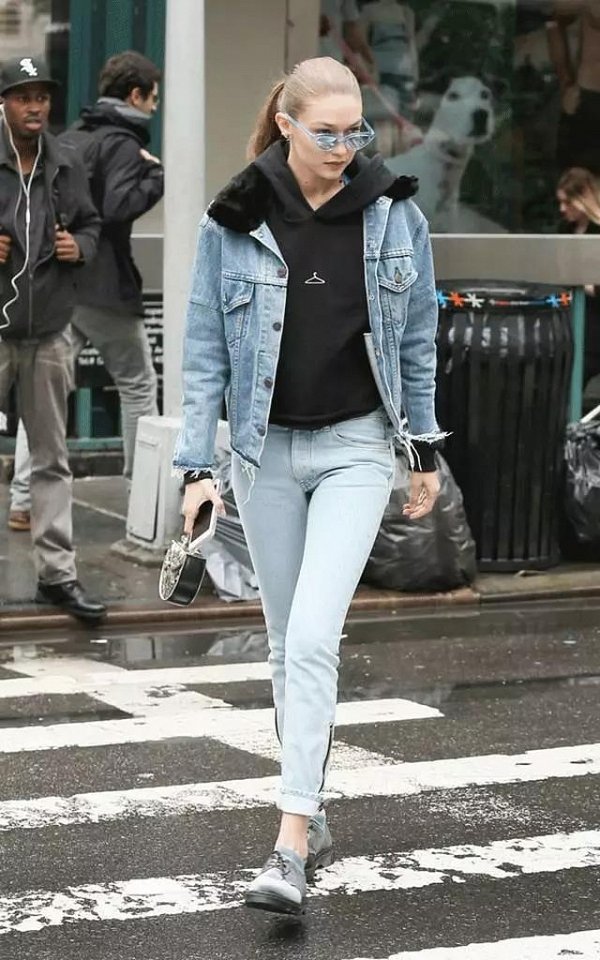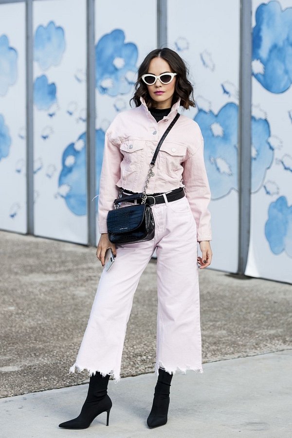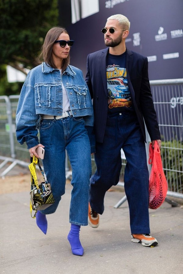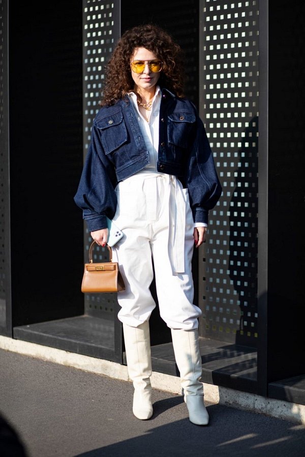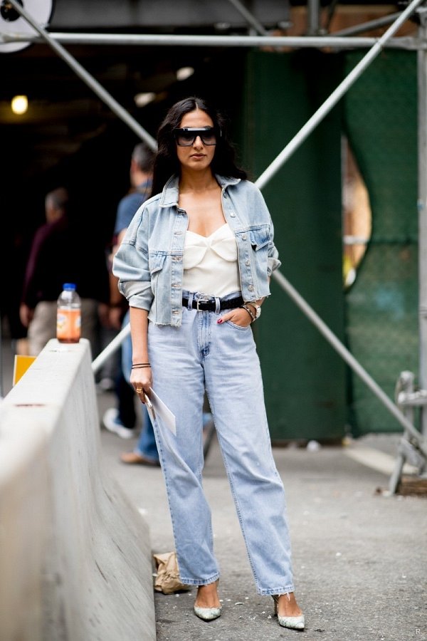 Джинсовый total look продолжает оставаться модным трендом сезона. Так что куртку из денима вполне можно надеть и с джинсами, и с джинсовыми шортами, сшитыми из одинакового материала. Хотите немного разбавить «джинсу»? Наденьте контрастную водолазку или футболку!