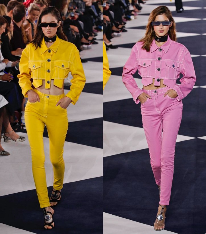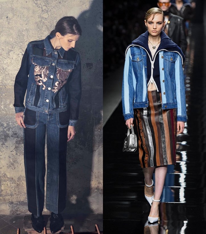 Теперь не обязательно выбирать какую джинсовую куртку купить - светлую или темную. Дизайнеры Alberta Ferretti и Versace представили в своих коллекциях комбинированные модели из разного вида и цвета денима.