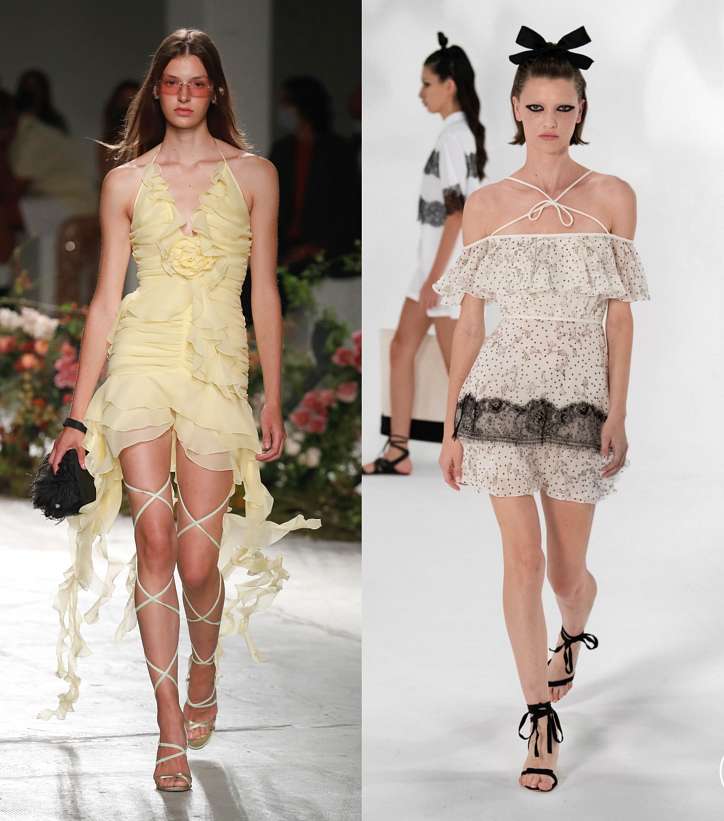 «Волнительная» тема вновь в тренде! Выбирайте на лето модели с рюшами и оборками, многослойными и скульптурными воланами. Примеры таких есть в коллекциях Giambattista Valli и Versace.