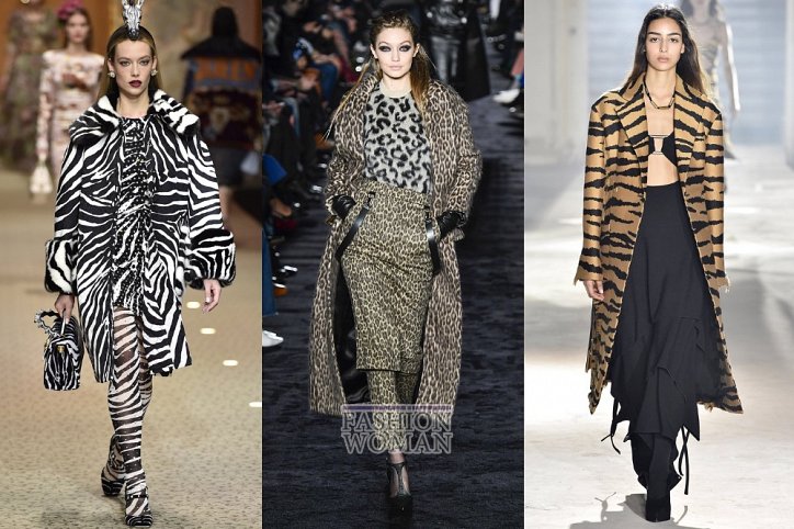 Женская мода всегда отдает должное анималистическим принтам. К следующей осени стоит обзавестись леопардовым пальто и ботильонами, купить платье и колготки «под зебру» и тренч с тигровой расцветкой. Таковы рекомендации Dolce & Gabbana, Proenza Schouler, Max Mara.