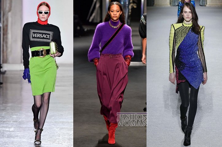 Одна из основных тенденций моды нынешнего сезона – возвращение в 80-ые – оказалась достаточно живучей. Судя по показам, дизайнеры решили продолжить «работу в архивах»: в коллекциях вновь море ультра-мини и денима, объемные плечи, рукава-буфы, каблуки kitten heels, блеск и неон в одежде и косметике. Примеры тому на фото у Fendi, Alberta Ferretti, Gucci.