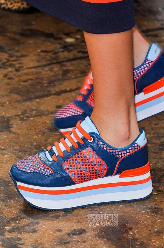 Стильные кроссовки и оригинальные кеды предлагают бренды Temperley London, DKNY и Burberry Prorsum. Носить их можно и с одеждой в спортивном стиле, и даже с вечерними платьями.