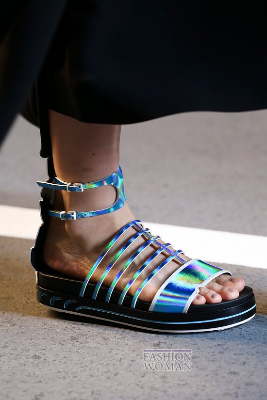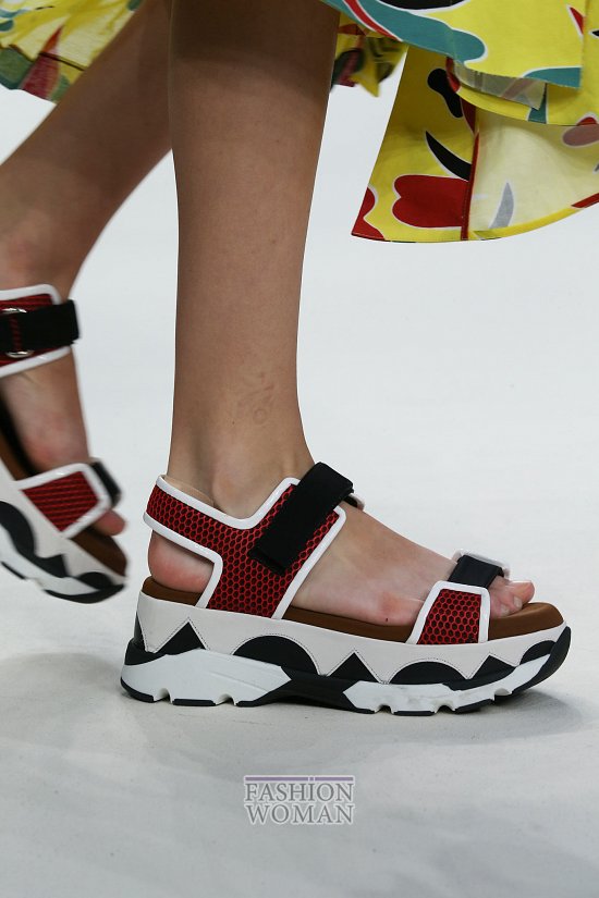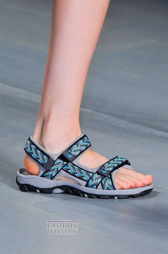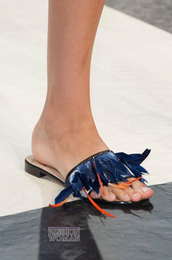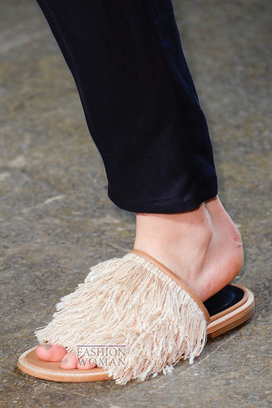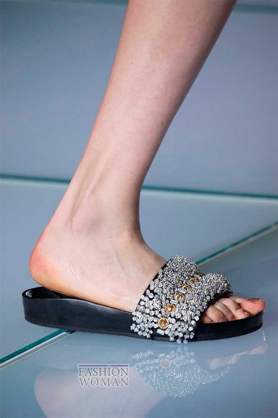 Популярные уже несколько сезонов кряду биркенштоки и не менее любимые пляжные шлепанцы тоже вошли в список горячих трендов. Дизайнеры Fausto Puglisi, Tibi и Heohwan Simulation украсили их перьями, стразами, принтами, бахромой и другими декоративными элементами, превратив их из просто удобной обуви в удобную и оригинальную.