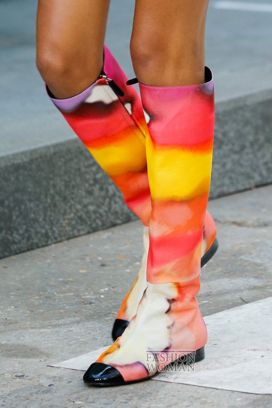«Наигравшись» в комбинаторику с одеждой, модельеры взялись за обувь. Модный несколько сезонов подряд тренд colorblock теперь обращает внимание на женские ножки. Разноцветные туфли, кроссовки, босоножки и сандалии продемонстрировали DKNY, Carolina Herrera и Burberry Prorsum.