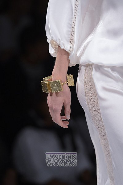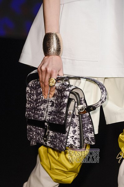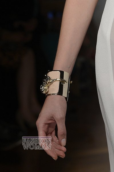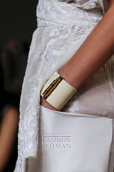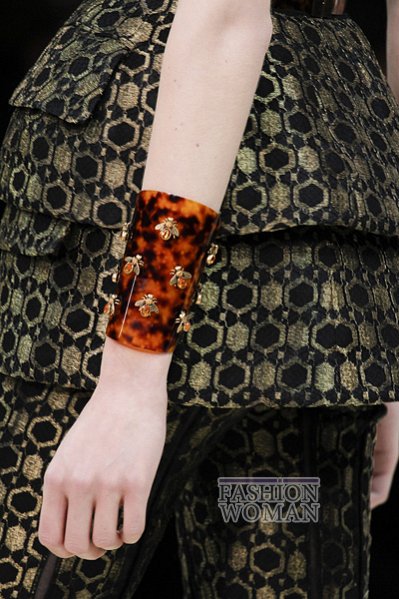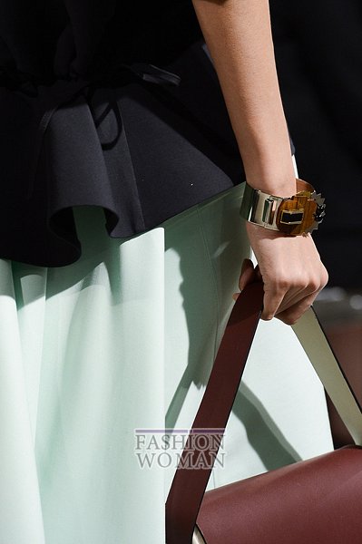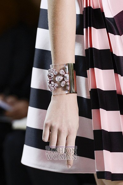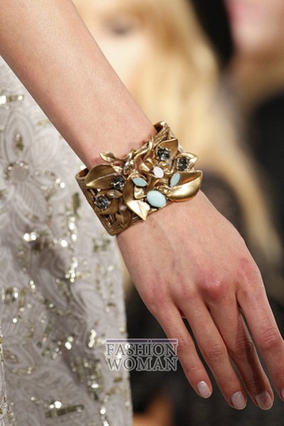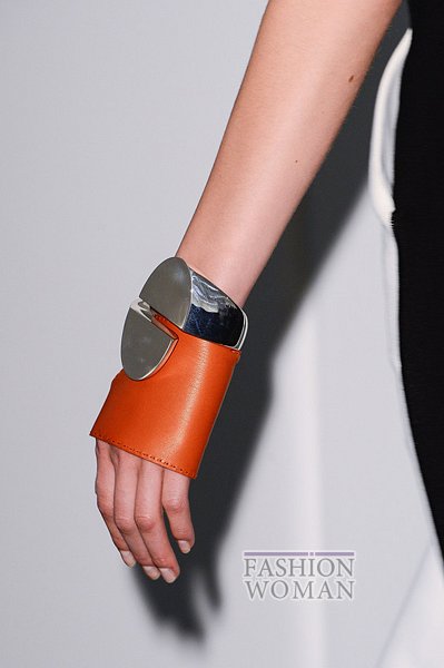 Браслеты могут быть разные: крупные, массивные из металла с камнями как на показах Oscar de la Renta, Jill Stuart, и Emporio Armani, из пластика - Alexander McQueen, Missoni, или же кожаные украшенные металлической фурнитурой и стразами как в коллекциях у Mulberry, Isabel Marant и Hermès.