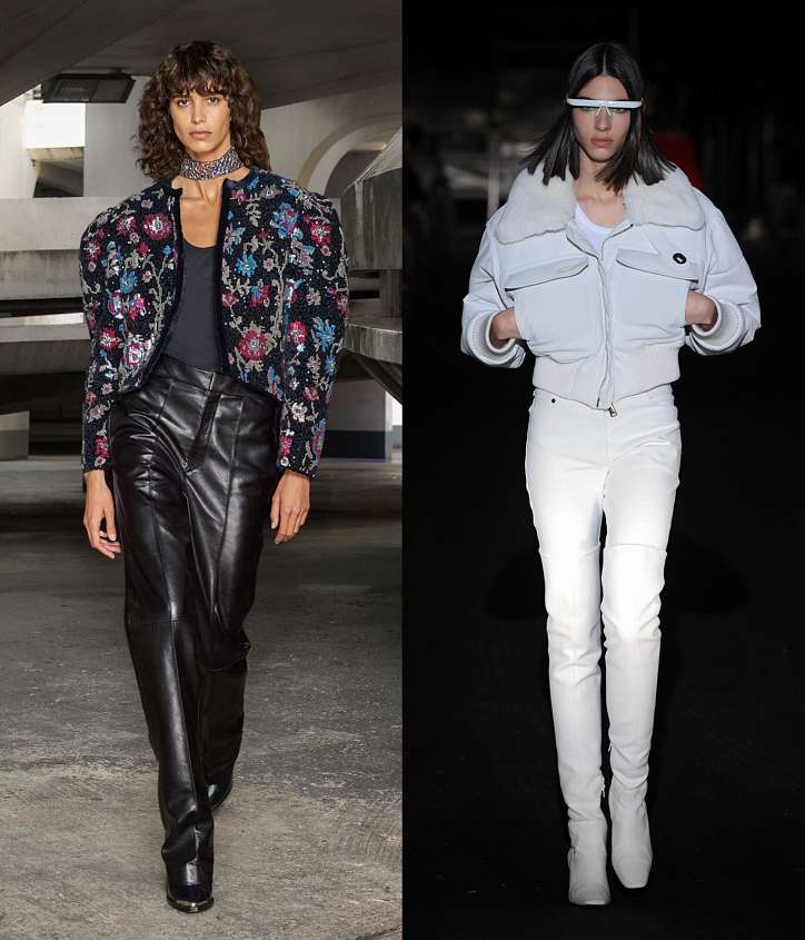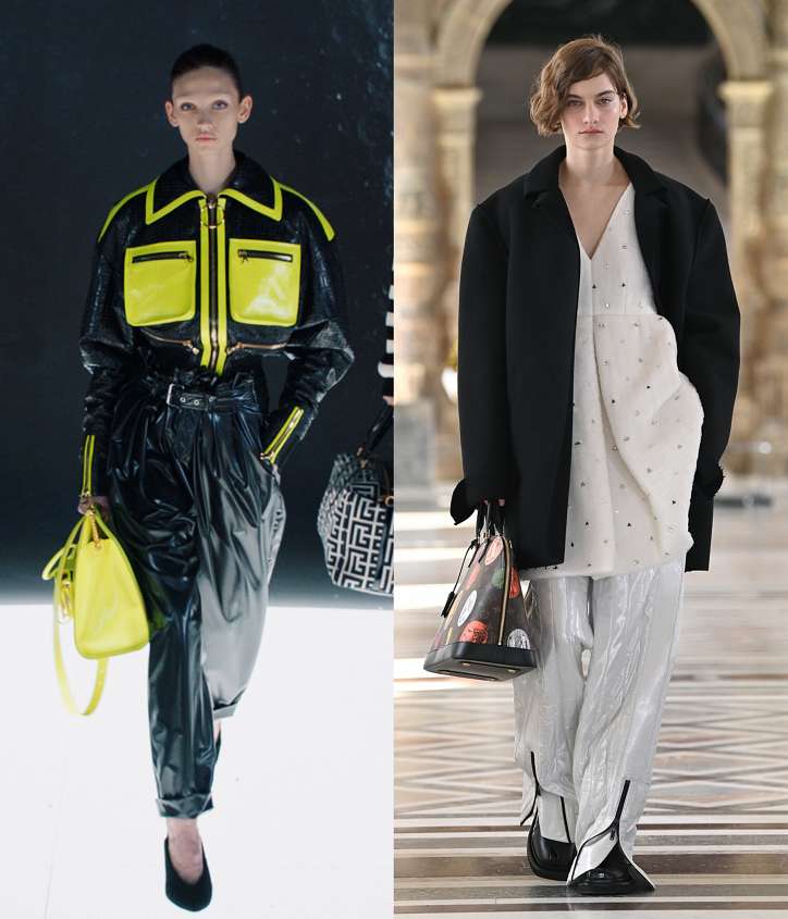 Металлизированные материалы, мягко переливающийся атлас и экстравагантный винил помогли дизайнерам создать немало интересных моделей как для вечернего выхода, так и для повседневных аутфитов. Примеры – у Balmain, Alice+Olivia, Dior.