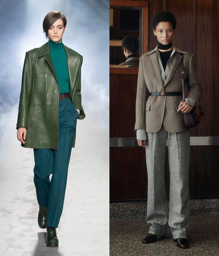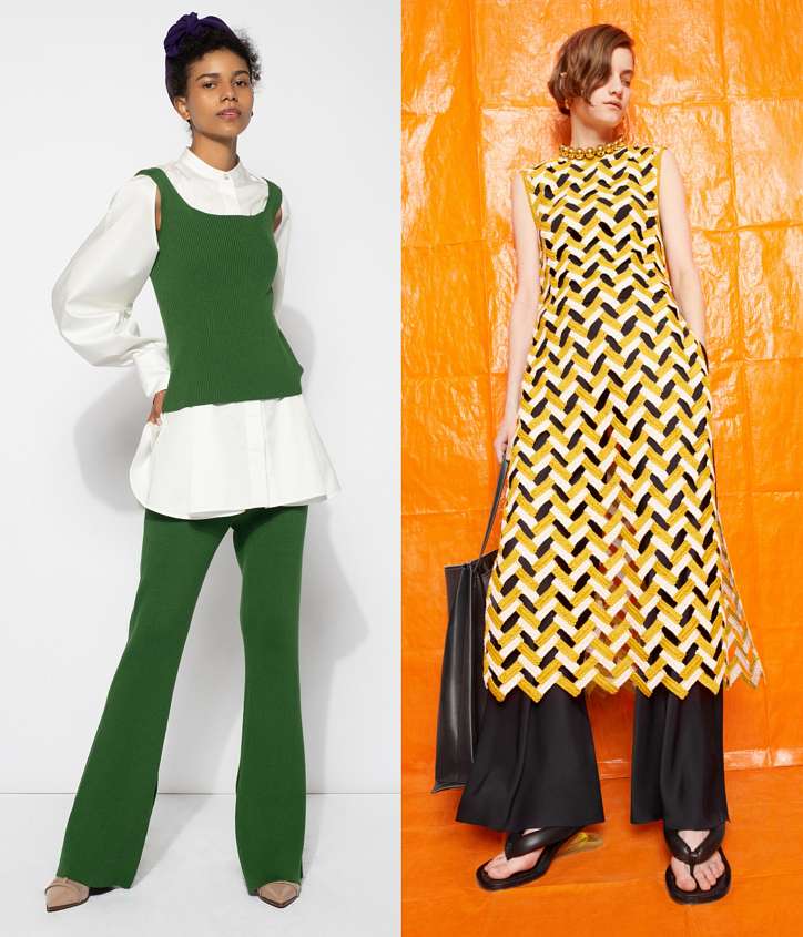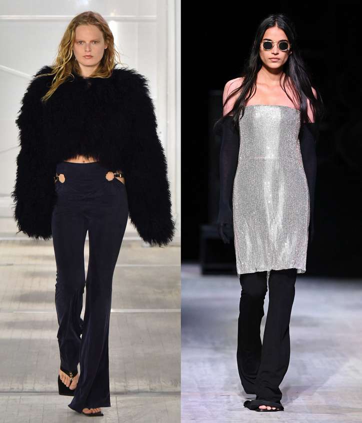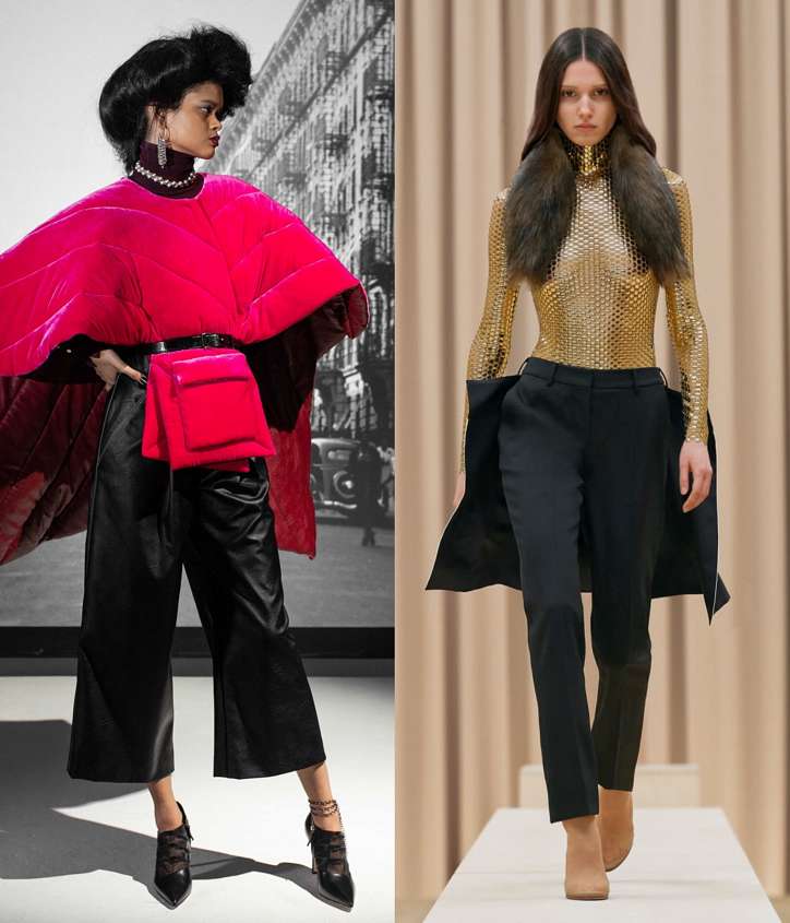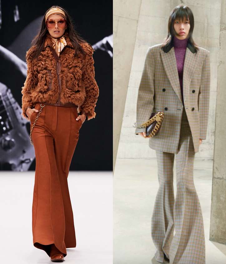 Не утратят остроты и актуальности в новом сезоне и тенденции 70-ых: яркий пример тому – брюки клеш, которые просто побили все рекорды популярности. Не вспомнил о них только ленивый: в коллекциях были и трикотажные, и кожаные, и вельветовые, и шерстяные модели. Дизайнеры Jil Sander, Stella McCartney, Dion Lee предлагают носить их и в составе костюмов, и с платьями, и с трикотажными рубашками в спортивном стиле.