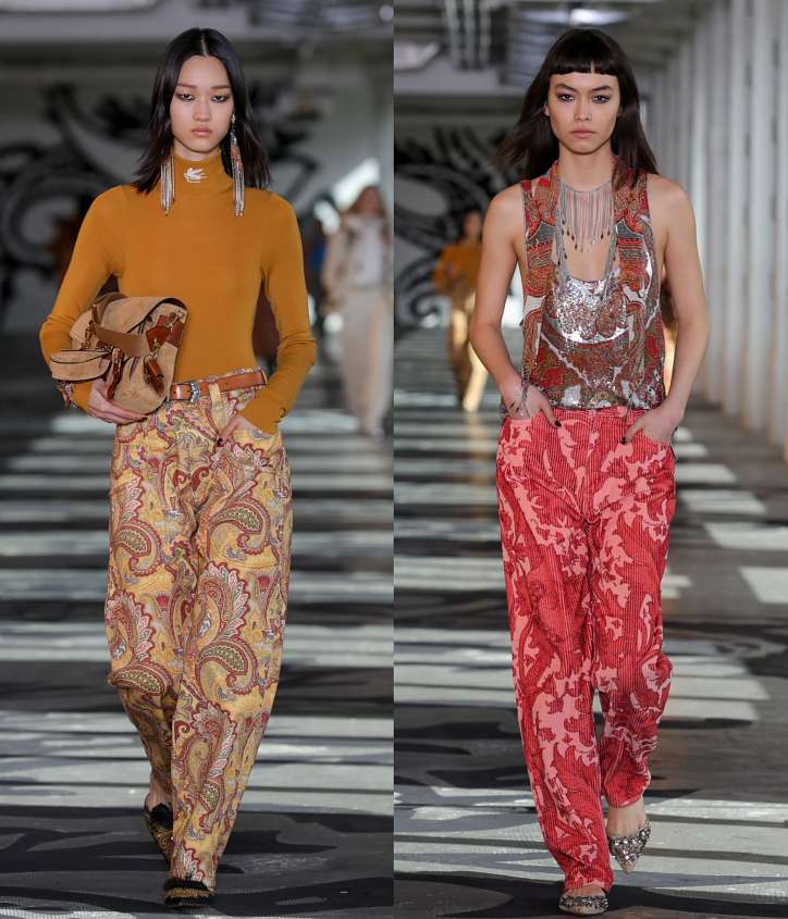 Неожиданно много в коллекциях осенних и зимних брюк оказалось моделей из принтованных тканей. Брюки в клетку были у Tanya Taylor, Вероника Этро предложила свой любимый рисунок «пейсли», а Dior – леопардовый принт.