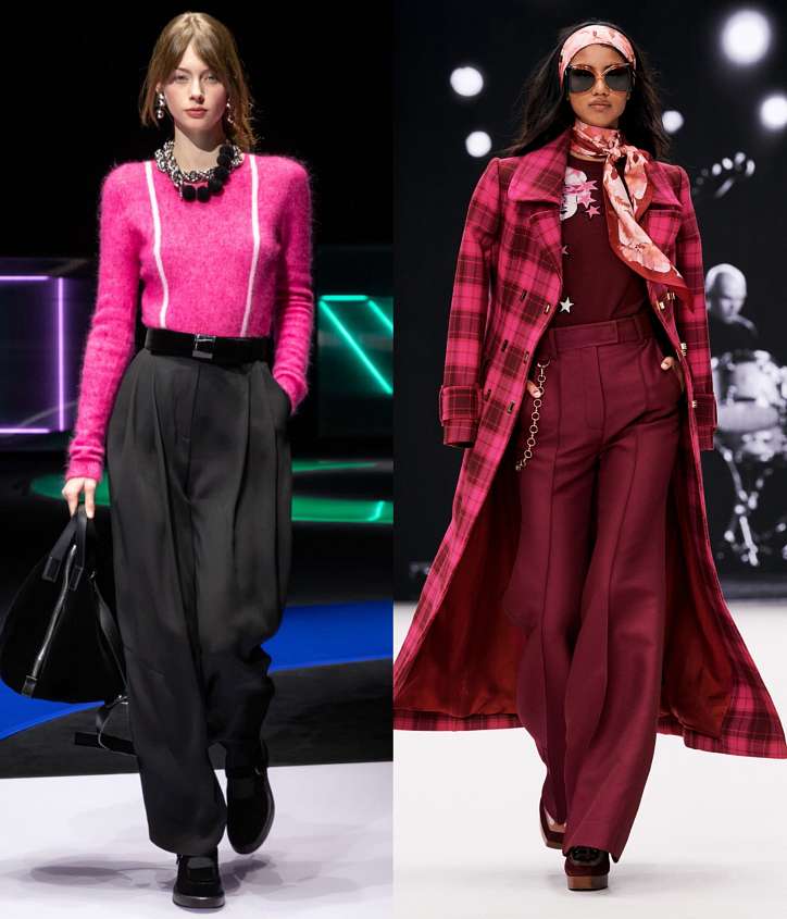 Традиционно осенне-зимние коллекции выглядят спокойно и придерживаются нейтралитета в цветовой гамме. Так, в этом году дизайнеры отдали предпочтение бежевым, оливковым, рыжим и серым оттенкам. Яркими вкраплениями стали модели выполненные в фиолетовых, розовых и красных оттенках. Также в коллекциях нашлось место и белым брюкам.