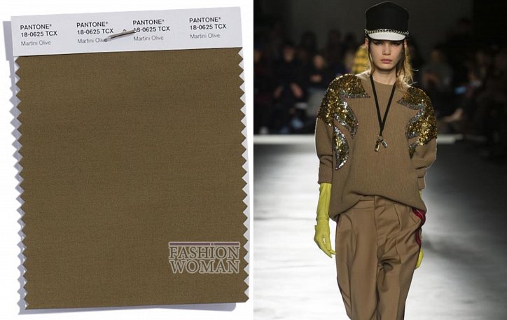 Коричнево-зеленый оттенок «Мартини с оливкой» кому-то напомнит о бокале популярного напитка, а кому-то – об осени. Сложный и изысканный, этот цвет выглядит природно и очень органично в осенней палитре.