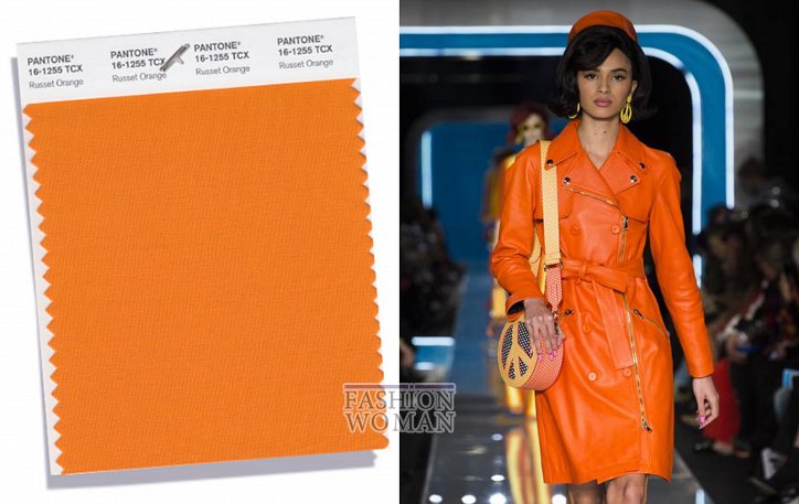 Оранжевый оттенок с красновато-коричневым подтоном, по мнению экспертов Пантон, наполнен теплом земли и ассоциируется с опавшей листвой. Но дизайнеры грустить не велят: они обыграли этот цвет по-своему – ярко, радостно и живо.