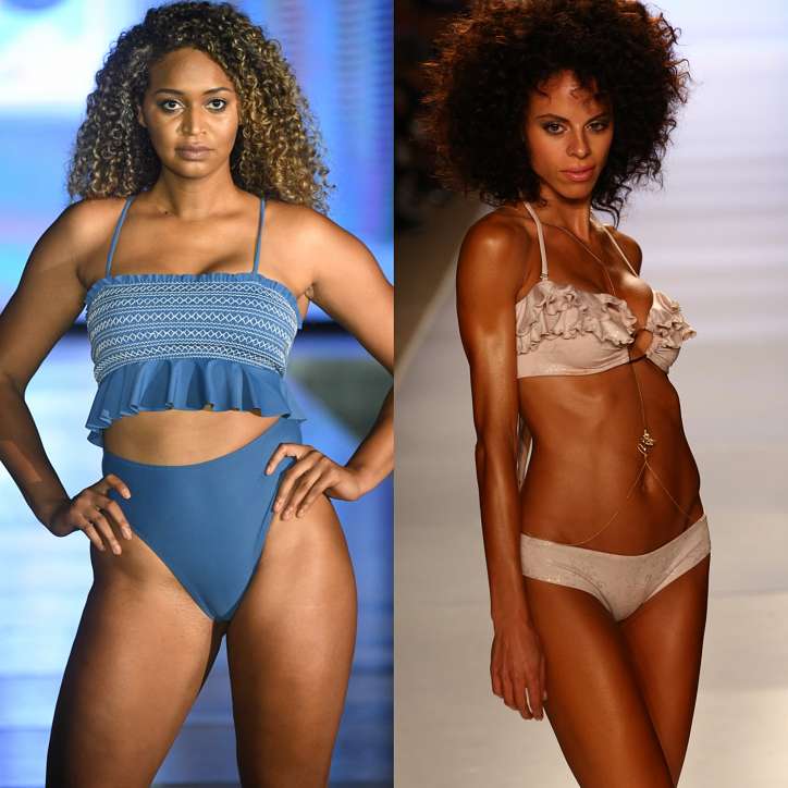 Также в коллекциях были представлены бикини и слитные купальники для полных девушек.