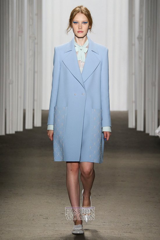 Для тех, кто хочет создать изящный и женственный образ стоит обратить внимания на пальто-платье, характерными чертами которого есть узкая талия и расклешенная юбка. Такие модели пальто были представлены в коллекциях Nina Ricci, Delpozo и Giambattista Valli.