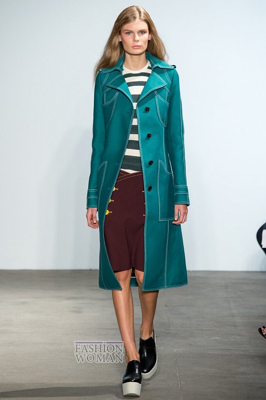 Изделия из мягкой замши стали одним из главных трендов этого сезона и замшевые пальто не исключение. Стильные модели из цветной замши представили в своих коллекциях Derek Lam, Loewe, Trussardi и др.