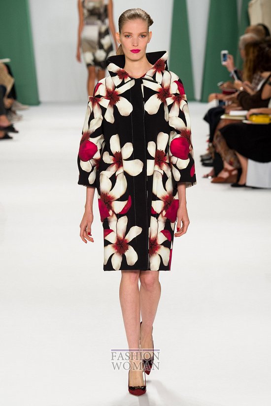Также этой весной будут актуальны пальто с яркими принтами - цветочными, абстрактными и хищными. Например, такие как были представлены в коллекциях Carolina Herrera, Max Mara и Karen Walker.