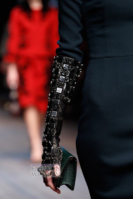 Не утратили своей актуальности и митенки. Эти удобные перчатки без пальцев были представлены в коллекциях Chanel, Dolce & Gabbana и Giorgio Armani.