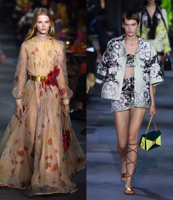 Самые модные цветочные принты следующего сезона – красные цветы. Конечно же, это не значит, что цветовая гамма ограничена исключительно красными оттенками – весной и летом традиционно одежда «расцветает» всеми оттенками радуги. Но преобладание алых бутонов нельзя не заметить. Подобные принты были в коллекциях домов моды Saint Laurent и Valentino.