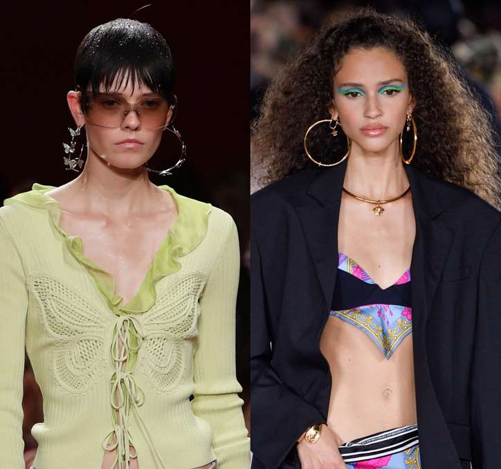 Никуда не денутся весной и любимые многими кольца-обручи. Blumarine предлагает большие серьги-кольца с бабочками по окружности, Missoni – цветные серьги из люцита, а Versace – лаконичные золотистые обручи в размере оверсайз.