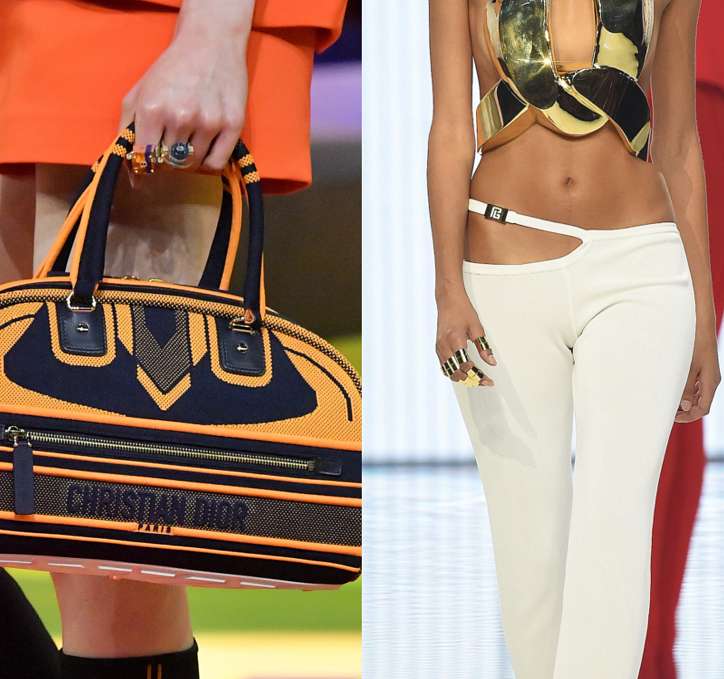 Никогда на подиуме не было столько жёлтого металла! Серьги и многорядные колье, браслеты и кольца, чокеры и цепи – выбор чрезвычайно широк. Самая оригинальная и модная бижутерия – у Saint Laurent, Versace и Roberto Cavalli.