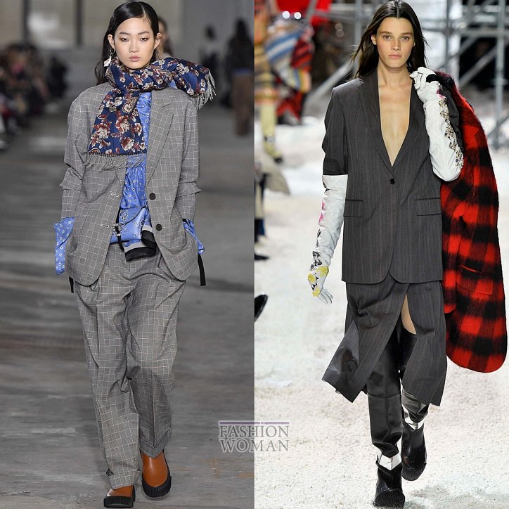 Еще один «долгоиграющий» тренд – «oversize». Уже не первый сезон в женских коллекциях можно увидеть покатые плечи, мешковатый крой, увеличенный объем рукавов и большие отложные воротники (Dries Van Noten, Fendi, Isabel Marant, Altuzarra).