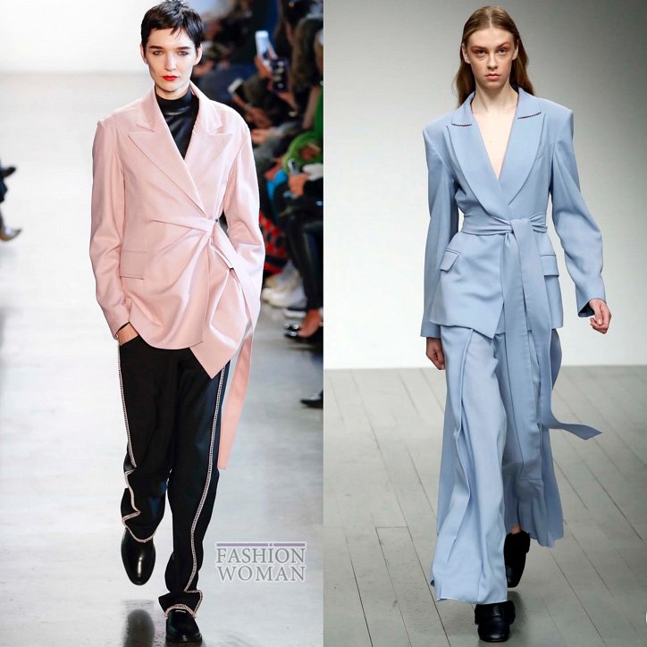 Отказались от пуговиц и дизайнеры брендов Victoria Beckham, Teatum Jones и David Koma предложив модницам жакеты на запах.