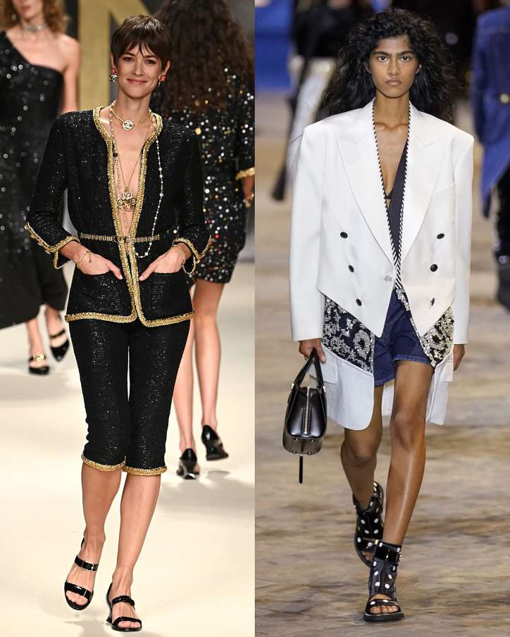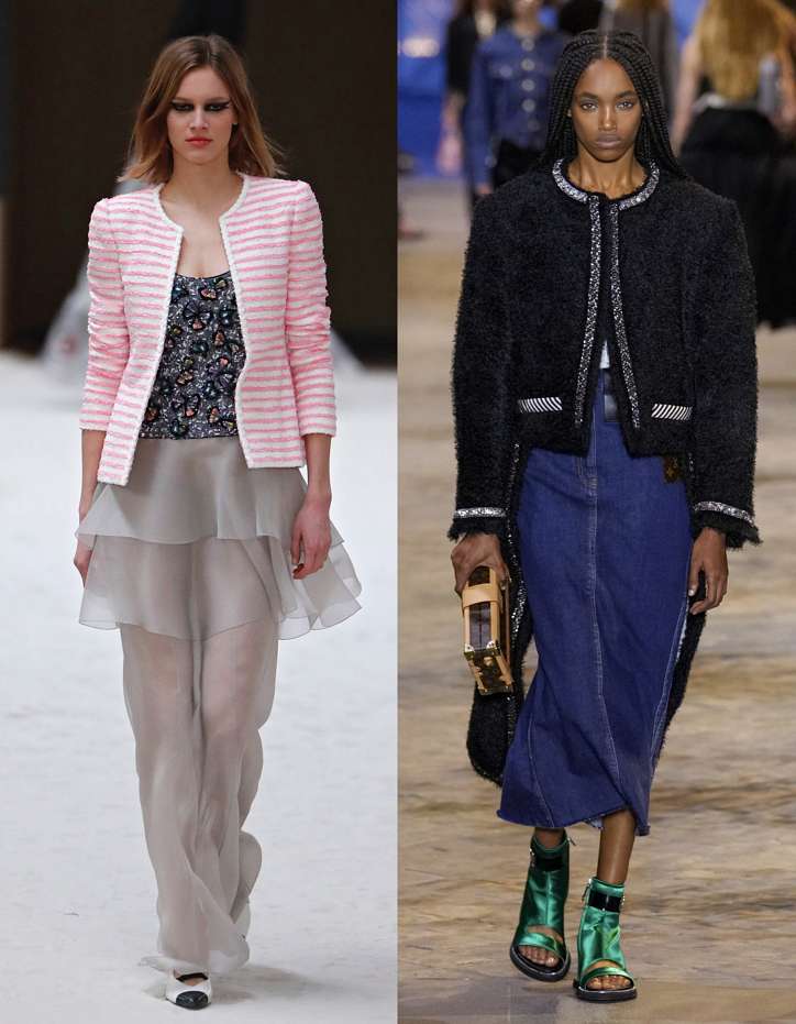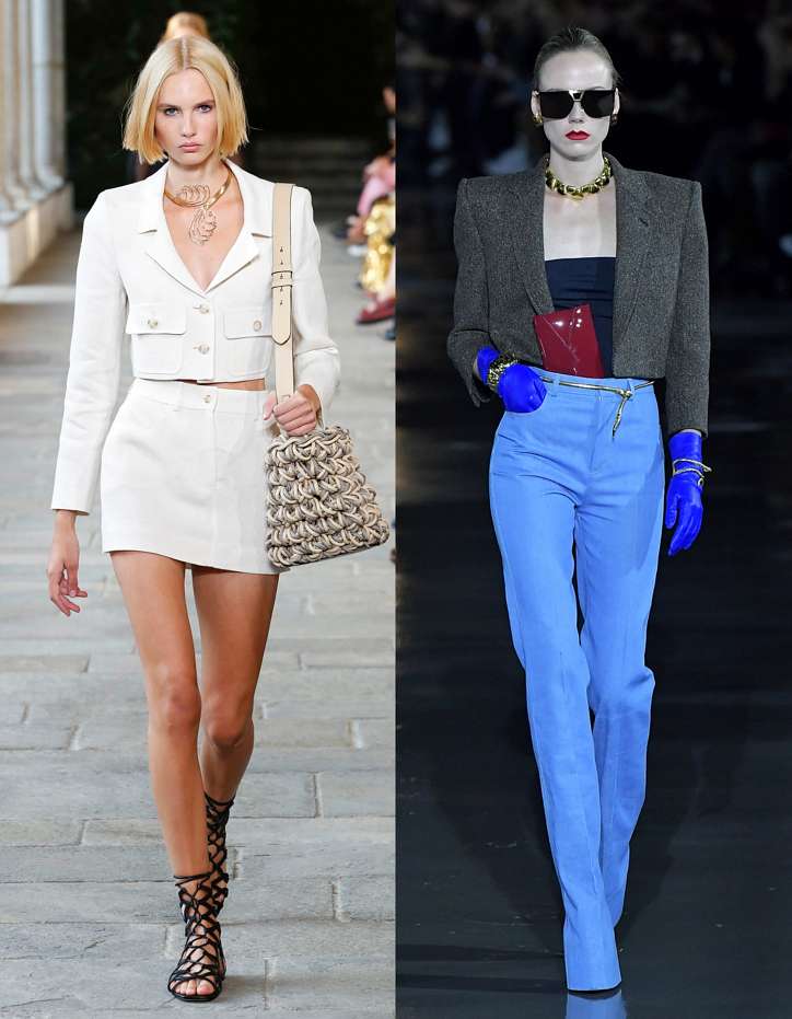 По-прежнему в тренде остаются и укороченные жакеты. Подобные модели представили бренды Saint Laurent, Louis Vuitton и Chanel.