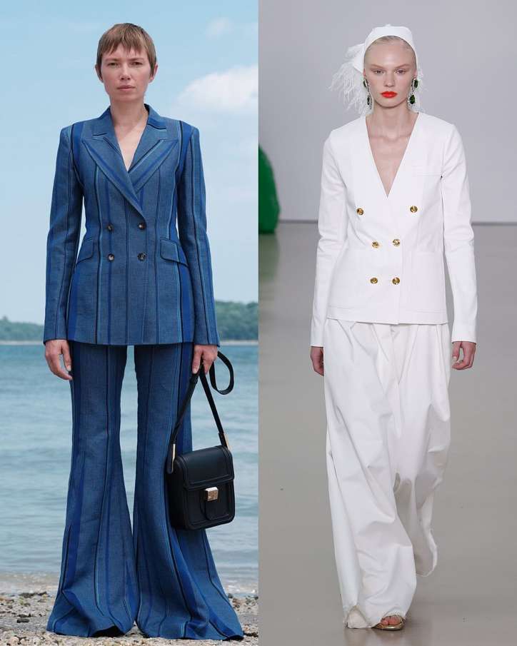 Принято считать, что два ряда пуговиц визуально добавляют объем и полнят. Однако дизайнеры Giambattista Valli, Gabriela Hearst и Max Mara опровергли это мнение, продемонстрировав не только умение оперировать современными технологиями кроя и знанием новинок текстильной промышленности, но и сумев предложить модные женские пиджаки с двумя рядами пуговиц для разных фигур и для поклонниц разных стилей.
