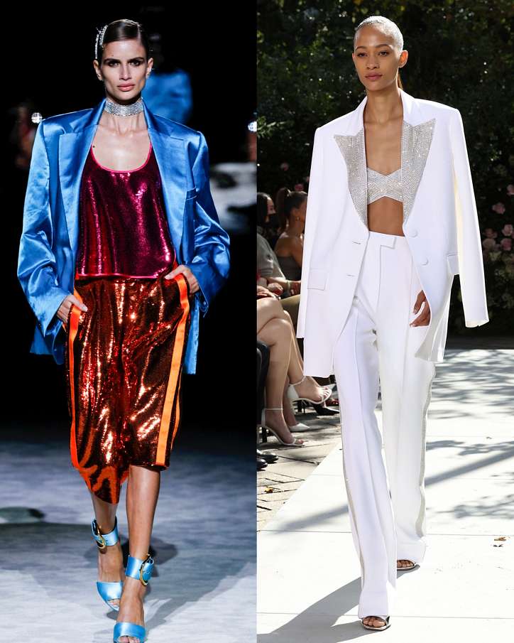 Всегда в тренде и нарядные жакеты, которые прекрасно дополнят ваш вечерний аутфит. В новых коллекциях можно найти самые разнообразные варианты: жакет без воротника из твида с люрексом – у Chanel, экстравагантно блестящие модели из атласа – у Tom Ford, белоснежное чудо с расшитыми пайетками лацканами – у Michael Kors.