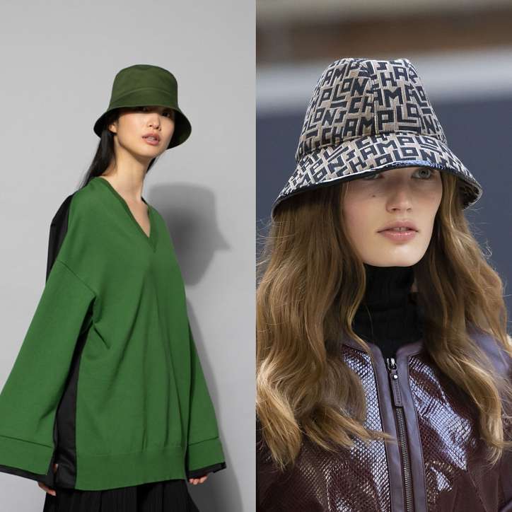 Излюбленный головной убор Рианны и Хейли Бибер - Bucket Hats – возглавляет топ трендов следующего сезона. Дизайнеры предлагают достаточно широкий выбор и цветов, и текстур, и однотонных вариантов, и моделей с принтами. Примеры – в коллекциях Longchamp, Celine и Adeam.