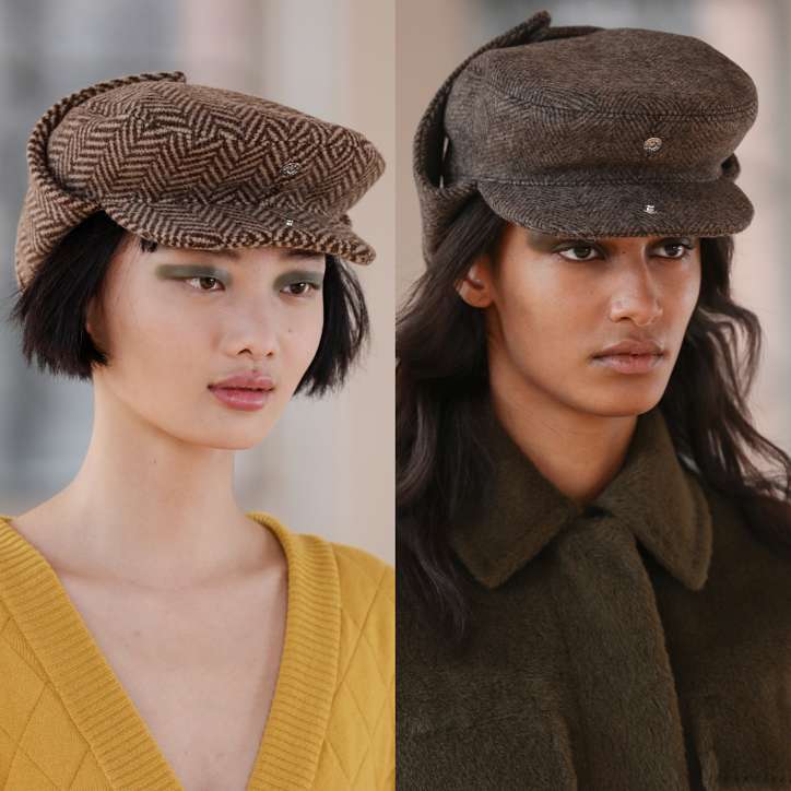 Продолжая тему традиционных меховых шапок с отложными «ушками» бренд Max Mara разработал совершенно новую версию этого головного убора. Выполненные в стиле милитари, эти теплые шерстяные шапки имеют не только «ушки», которые можно поднять кверху и зафиксировать на макушке, но и козырёк.