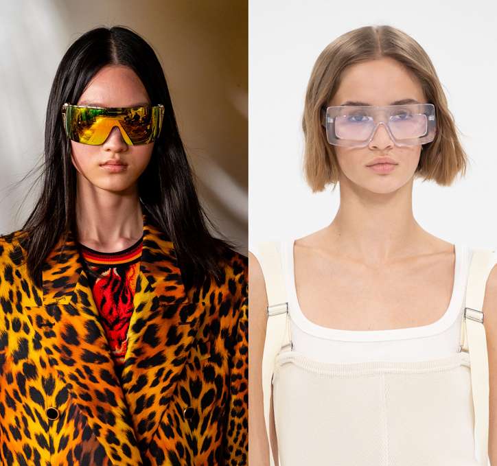 Массивные очки, закрывающие пол-лица, - отклик дизайнеров на пандемию и необходимость «прикрываться» в людных местах. На черных и зеркальных непрозрачных «масках» сфокусировал своё внимание Roberto Cavalli и Saint Laurent (в таких очках вы скроетесь не только от вируса, но и от лишних глаз). Квадратные оправы оверсайз предлагает Ulla Johnson.