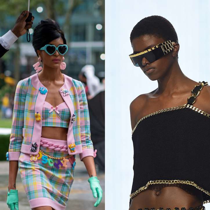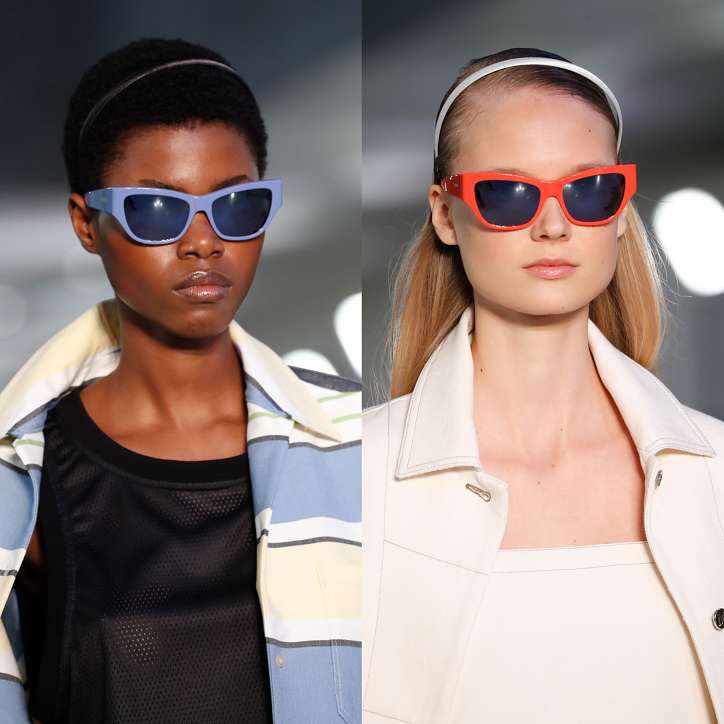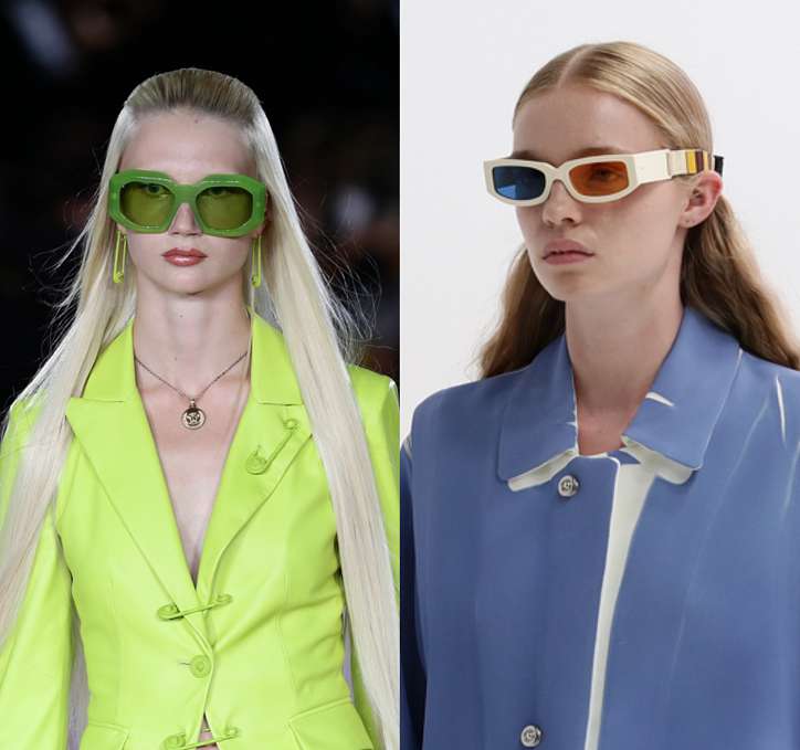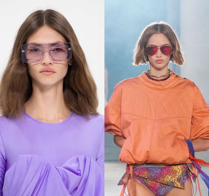 Яркие и пастельных оттенков линзы обязательно станут акцентом вашего образа. Оправа при этом может быть и белой, и практически незаметной металлической, и такого же цвета, что и линзы. Всевозможных вариаций этого тренда в весенне-летних коллекциях было очень много. В числе самых интересных новинок – модели Sunnei, Christian Dior и Versace. Кстати, у Донателлы Версаче и Paul & Joe можно заметить и ещё одну модную тенденцию – очки в ее коллекции идут тон в тон к одежде.