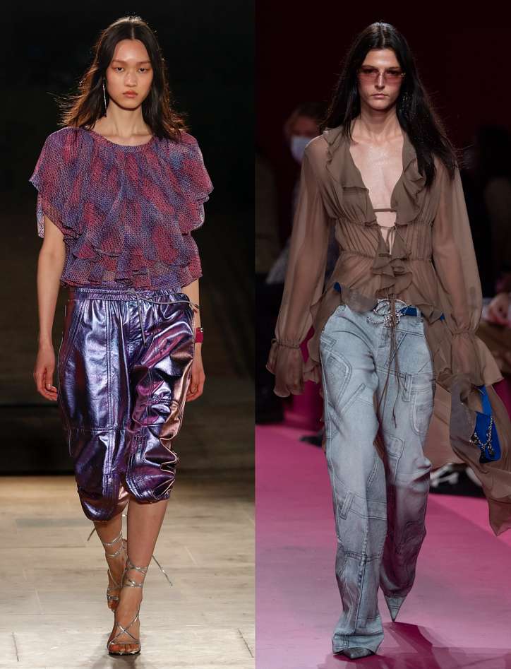 Не удовлетворившись одними только пышными рукавами, дизайнеры увеличили объем блузок в целом. Molly Goddard, большая поклонница преувеличенных объёмов и романтического стиля, предложила модницам примерить нежно-розовую блузу с оборками. В подобном же стиле были модели и в коллекции Bora Aksu, а бренд Patou продемонстрировал голубую модель из хлопка.