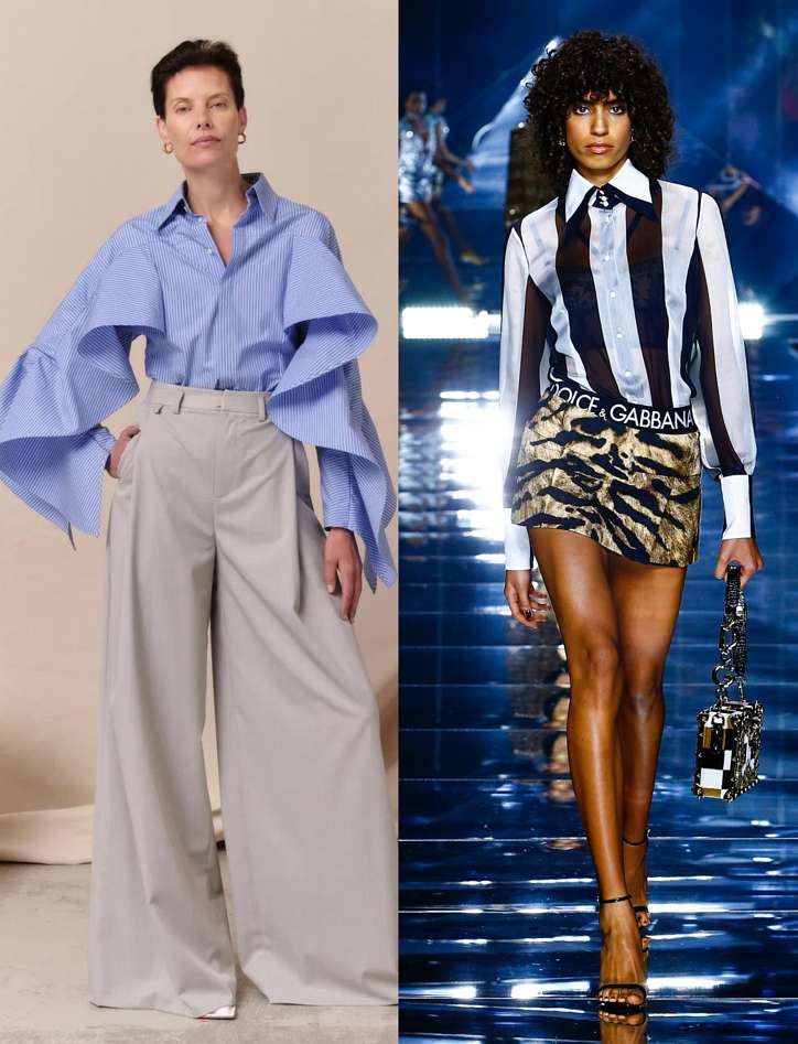 Полосатая рубашка в новом сезоне выглядит очень эффектно – благодаря своей ширине и колорблокингу, который дизайнеры использовали для привлечения внимания. Оценить предлагают Raf Simons, Dolce & Gabbana и Palmer Harding.