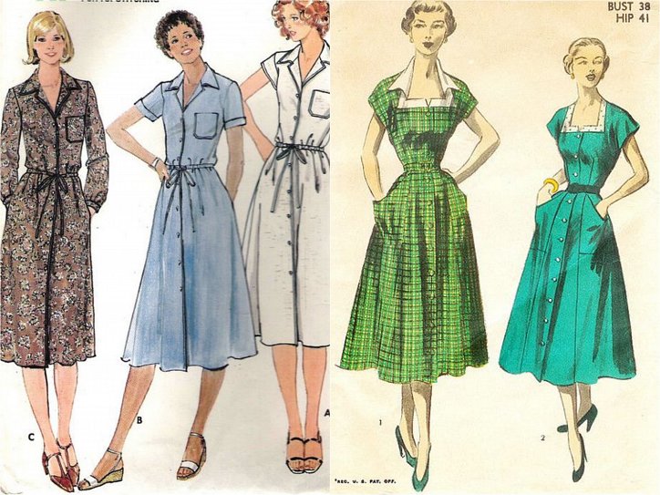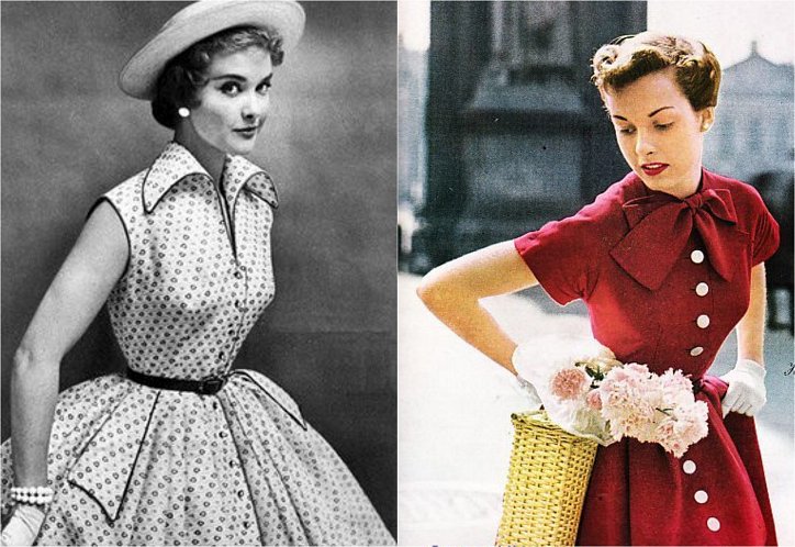 Платья на пуговицах спереди были чрезвычайно популярны еще в 50-ых годах. «В компании» с большим воротником они частенько появлялись на пляжных фото модниц той эпохи.