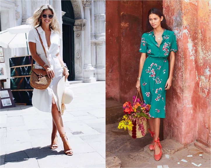 В нынешнем сезоне платье на пуговицах в очередной раз вошло в топ модных трендов. Дизайнеры и бренды масс-маркет предлагают модницам примерить летнее платье-рубашку, платье-халат и летний сарафан.