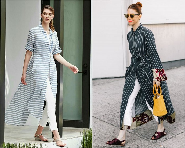 Платье на пуговицах может быть не только самостоятельным элементом гардероба – его можно носить и в паре с брюками, джинсами или шортами.