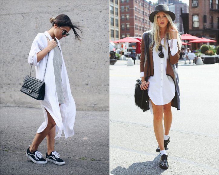 Туфли или босоножки на каблуке, кроссовки, сандалии или балетки – подойдет все! Причем одно и то же платье с разной обувью будет выглядеть по-разному, так что простор для экспериментов просто необозримый.