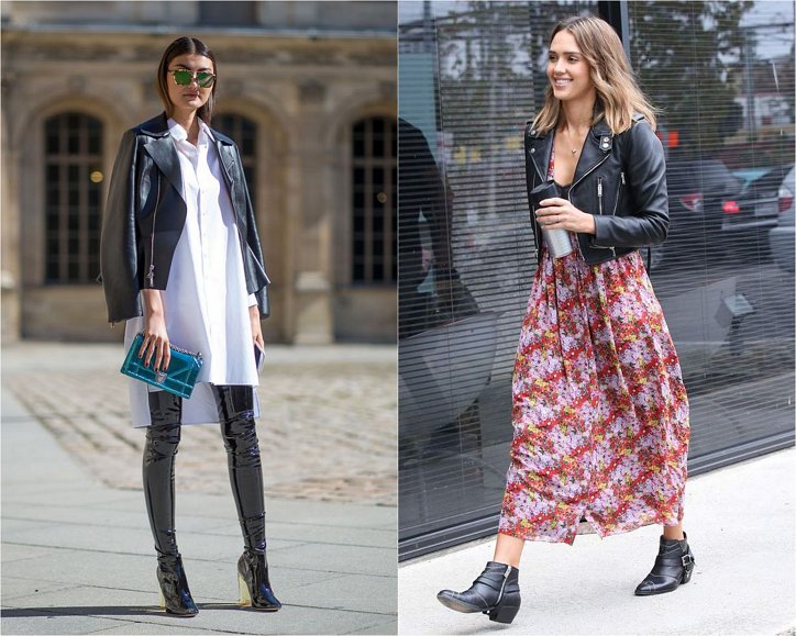 Если же на улице похолодало - смело надевайте сверху жакет, куртку-косуху, кардиган, плащ или пальто. И, конечно же, обувь по погоде. Лучше всего – ботильоны, невысокие сапоги на низком ходу или ботфорты.
